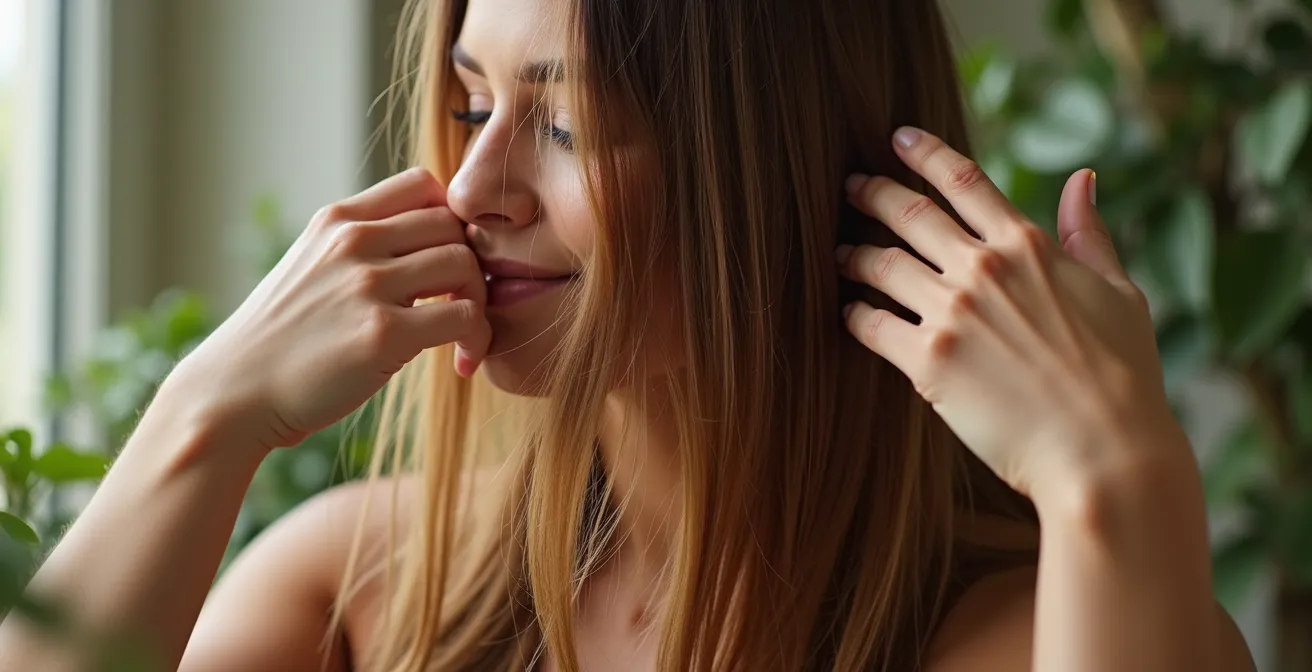 Interpréter correctement les signaux de vos cheveux durant cette phase conditionne le succès de votre transition. Un aspect terne n’indique pas que les produits végans sont inefficaces, mais que vos cheveux manquent des reflets artificiels créés par les silicones. Cette matité temporaire précède l’apparition d’une brillance naturelle, celle qui provient d’écailles resserrées et d’une cuticule saine. La clé réside dans l’observation attentive et l’ajustement progressif de votre routine en fonction des besoins révélés.
